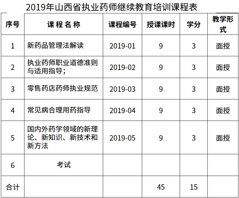 附件:《2019年山西省执业药师继续教育培训课程表》