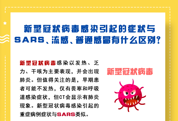 新型冠状病毒感染引起的症状与SARS、流感、普通感冒有什么区别?