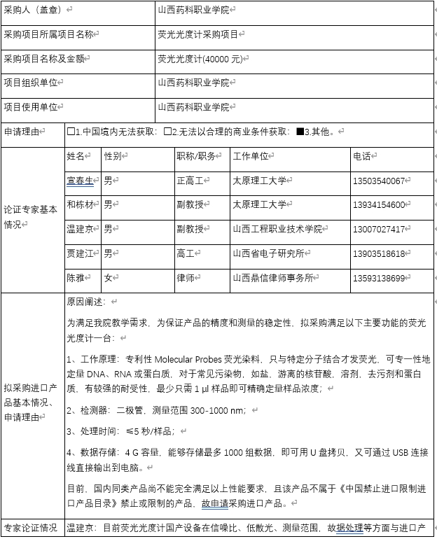 AG电子官方网站荧光光度计采购项目进口产品专家论证意见公示