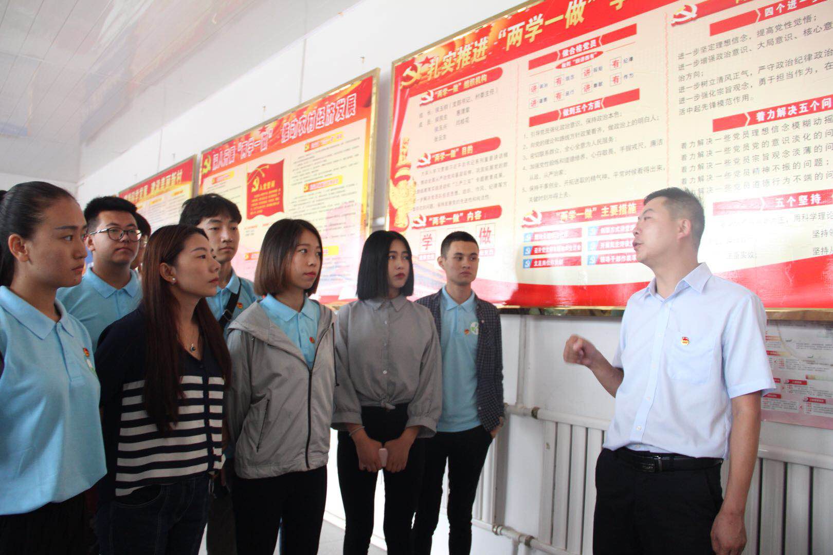下午,实践团来到窑子上村,在乡领导的悉心讲解下,实践团全面了解了乡镇情况、养殖业情况及脱贫帮扶典型成功案例,受益匪浅。最后,窑子上村马村长带领实践队员们参观了上窑子村支部委员会,并对窑子上村文化基地进行了参观学习。通过此次活动,实践队员们对农村的新发展有了更深入的了解,对精准扶贫有了更深入的了解,也感受到了神池县人民对于脱贫的决心,纷纷表示应该努力学习文化知识,学以致用,大胆实践,为将来因地制宜为家乡实现可持续发展做出贡献打好基础。