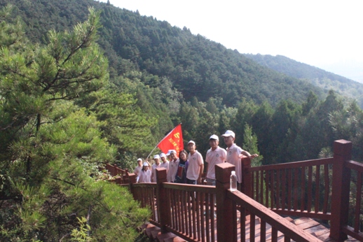 为培养团队精神,提高团队意识,增强团队凝聚力,7月16日,赴屯留社会实践队在“长治市青少年社会实践教育基地---老顶山”组织了以“登山健身,环保随行”为主题的素质拓展活动。实践队员沿路上一边爬山,一边四处捡寻垃圾,尽管头上的汗顺着脸颊往下流,但看到地上被丢弃的垃圾,队员们也都及时清理干净。下山的路上,大家都说“这次环保登山行动好!”不仅锻炼了身体,又清洁了老顶山,一举两得。
