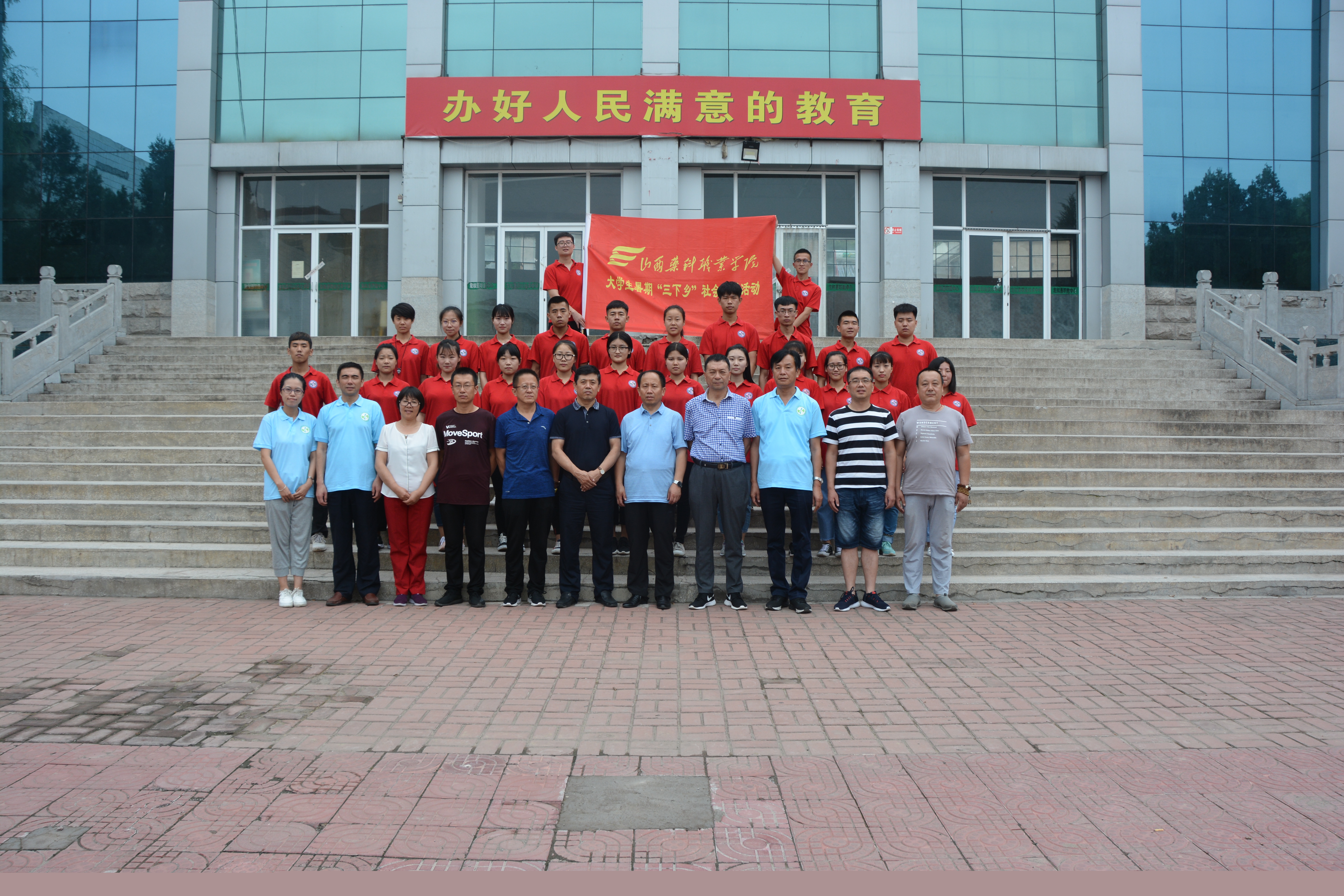 院党委委员、纪委书记贺聪明,院党委委员、副院长陕荣善与赴左权社会实践团师生合影留念