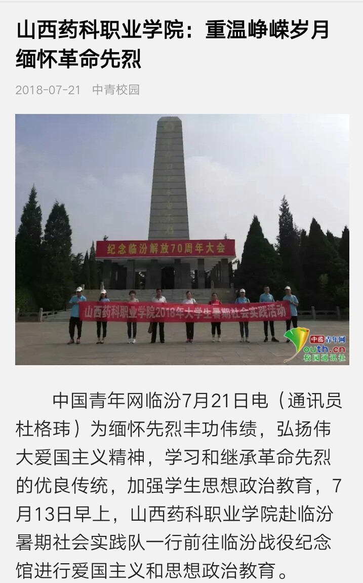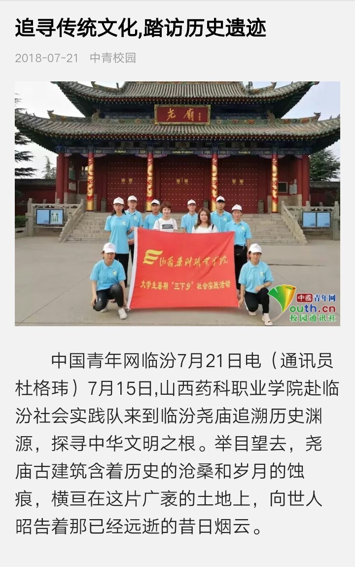 7月,AG电子官网开展了以“青春大学习,奋斗新时代”为主题的2018年大学生暑期社会实践活动。17支实践团、300余名师生分赴大同、朔州、忻州、吕梁、太原、晋中、临汾、长治、晋城、运城等地,开展了为期2周的社会实践活动,并已于日前顺利返程。