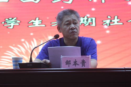 院党委副书记邹本贵代表学院党委对参加社会实践的同学做出征动员。他要求全体带队教师和实践队员在了解国情中牢记职责使命、坚定“四个自信”,在向实践学习中增长才干、提升能力,在艰苦环境中磨砺意志品质、彰显人生价值。他强调,带队教师和实践队员们一定要牢固树立“安全第一”的思想,始终把安全工作放在首位,做到计划周详,准备充分,严守纪律,服从指挥,确保实践活动安全顺利开展。