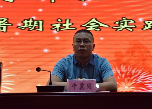 团省委学校部部长牛冀同代表团省委对AG电子官网暑期社会实践出征仪式的召开表示祝贺。他充分肯定了AG电子官网历年暑期社会实践工作,同时就今年大学生暑期社会实践活动提出两点希望:一是希望广大青年学生要珍惜机会、提高素质,要充分认识社会实践对于成长、成熟,成才、成人的重要意义和价值,积极投入到实践服务中去,在实践中历练胆识,在服务中提高能力,在奉献中锤炼品格;二是希望各级团组织要科学谋划、不断创新,广泛开展形式多样的实践服务活动,积极构建实践育人的创新机制和长效机制。