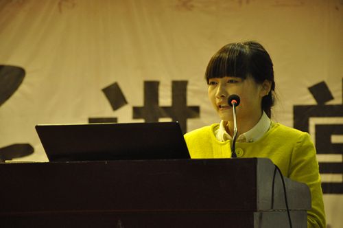 图为“讲道德事迹”环节,工商管理系陈莉同学讲述她的励志故事
