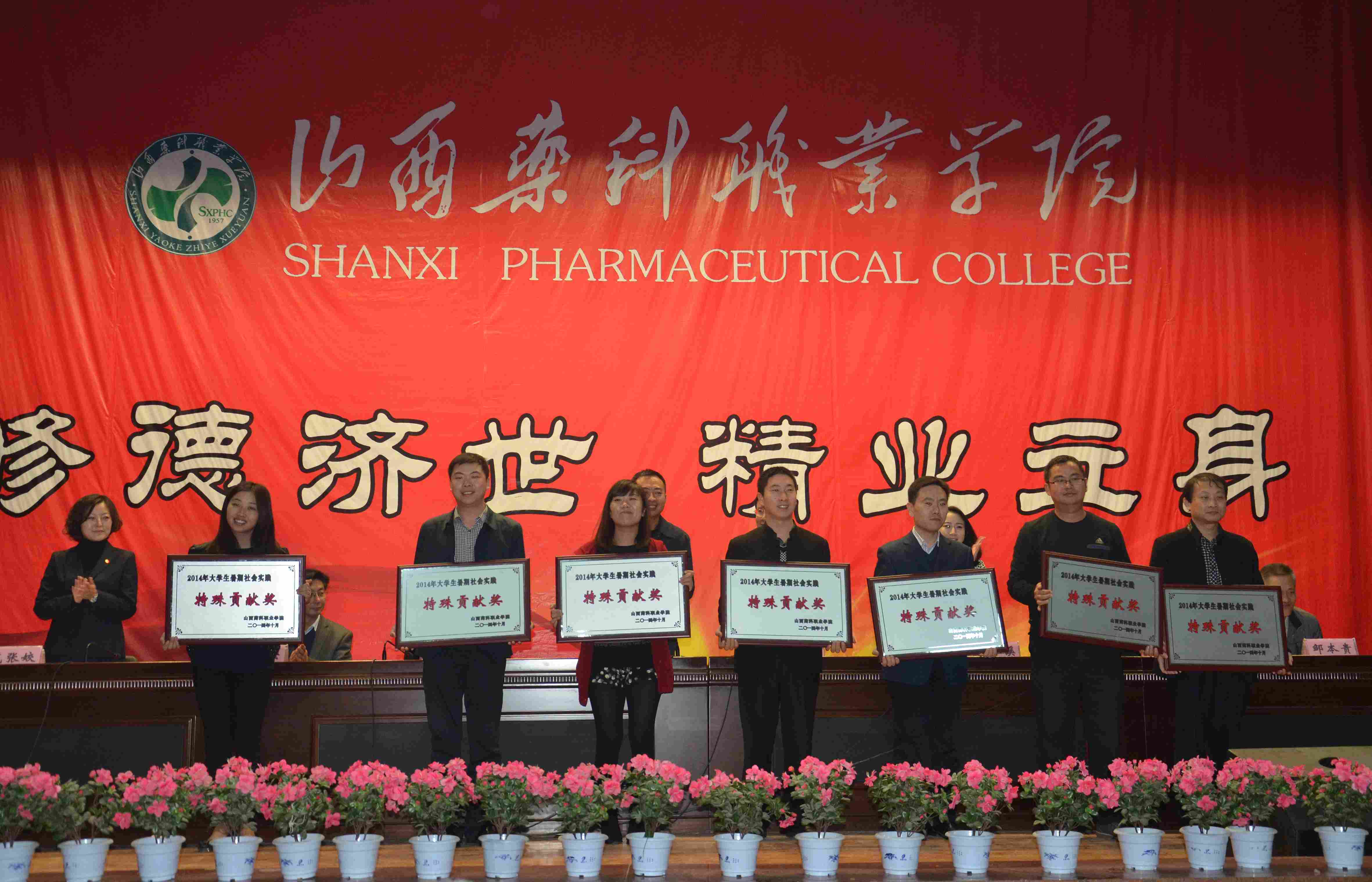 图为院领导为社会实践单位颁发特殊贡献奖