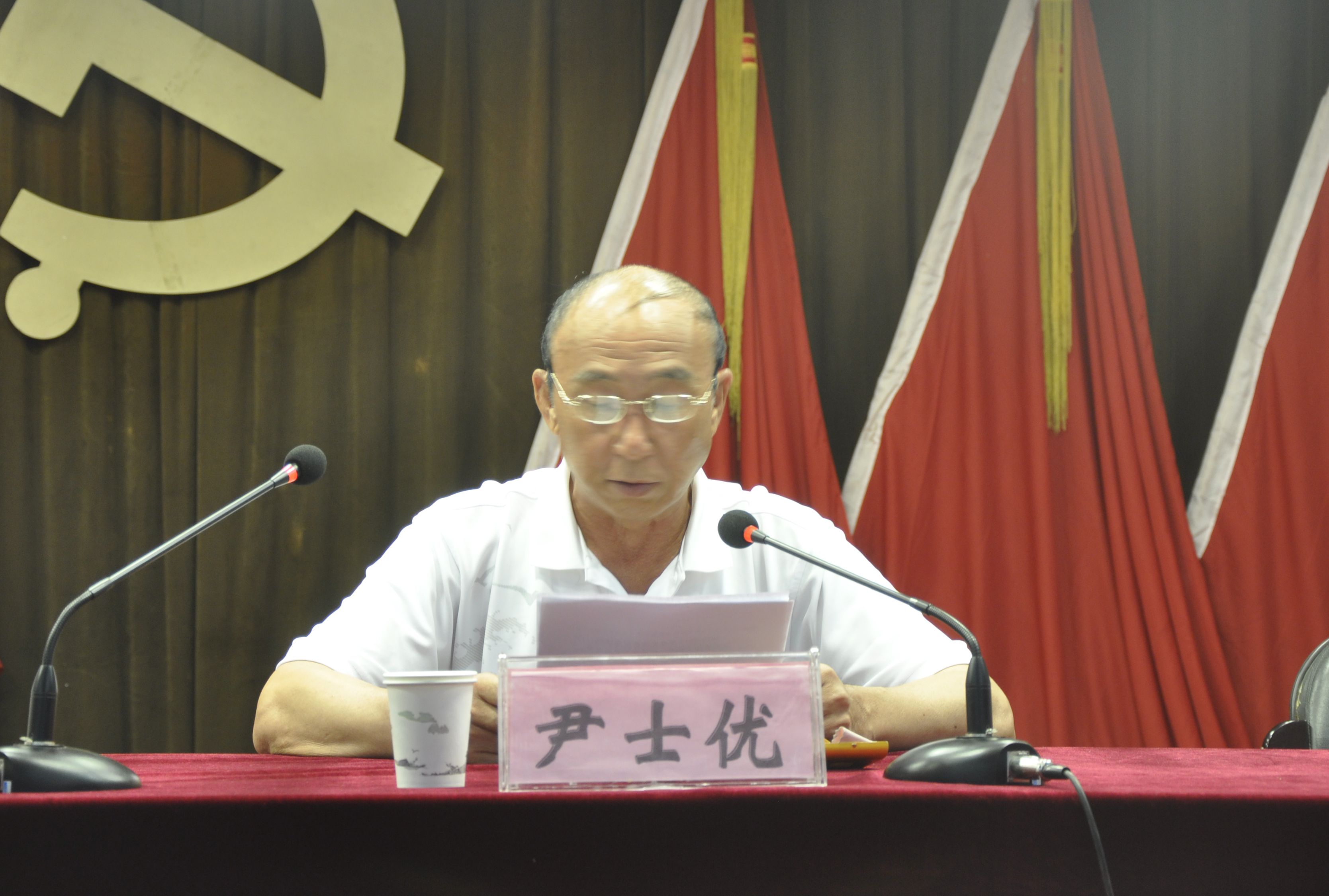 图为院党委副书记尹士优同志宣读表彰文件
