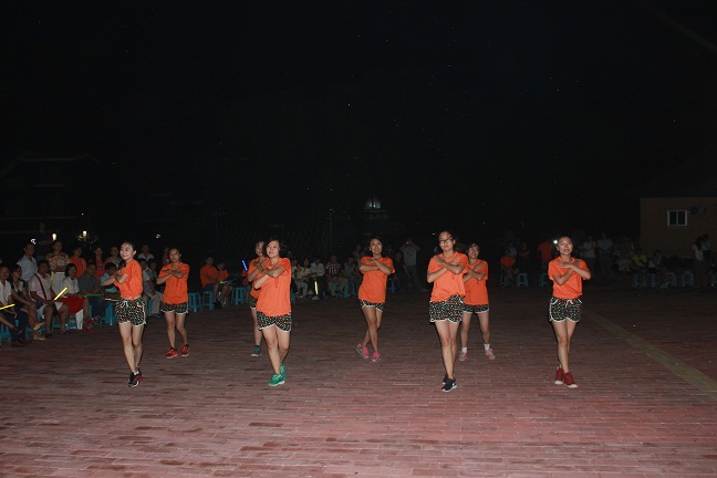 图为AG电子官网团干在篝火晚会上表演舞蹈