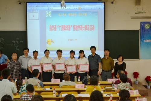 为进一步强化教师基本功,提升教师的教学和教研水平,提高教育教学质量,有效推进“热爱学院、热爱系部、热爱班级、热爱岗位”主题教育活动的顺利开展,2013年5月15日下午,药学系在东教学楼二层二阶开展了“广药陈李济”杯教学设计比赛。在校院领导李华荣、王家政、胡尔雅、张震云以及广州白云山陈李济药厂有限公司山西省区经理常兆龙应邀出席本次活动。
