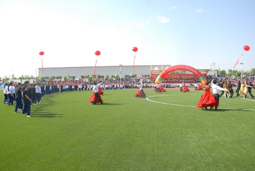 五月的药苑,阳光明媚,鲜花绽放,百草溢香。 5 月16 日下午,艳阳高照,彩旗飘扬。全院师生兴高采烈齐聚学院新落成的运动场,隆重举行“学院2012年春季田径运动会开幕式暨新运动场启用仪式”。院领导张瑞芳、李华荣、龚晋文、尹士优、胡尔雅、张震云出席开幕式。开幕式由党委委员、副院长尹士优同志主持。