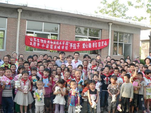 六月阳光灿烂,六月百花盛开。为了加强AG电子官网与周边农村的和谐共建,“六一”期间,院团委副书记苏珍枝、宣传统战部部长助理裴建平、药品经济贸易系党总支副书记郁敏以及中药系和生物系的辅导员老师一行13人赴太原市小店区东峰村,同东峰小学举行了“手拉手,爱心助学”联谊活动,为这里的孩子送上了精彩的文艺节目和真诚的节日问候,并捐赠价值近四千元的学习、运动用品,受到了东峰小学一百余名师生的热烈欢迎。