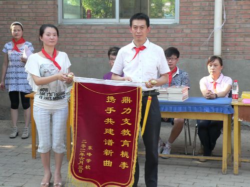 联谊活动结束时,东峰村小学向AG电子官网赠送了“鼎立支教育桃李,携手共建谱新曲”的锦旗,并与学院代表合影留念。