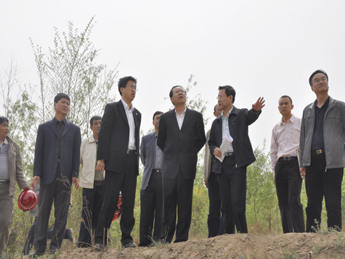 图为汤部长就护坡施工工作作重要指示