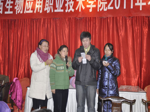 同欢共贺迎佳节,团结振奋话未来。1月17日晚,全院教职工欢聚一堂,举行2011年迎新春联欢会。院领导张瑞芳、李华荣、龚晋文、尹士优、胡尔雅、张震云出席,全体教职员工300余人参加了联欢会。整个会场张灯结彩,节日气氛浓烈,大家分享着关爱与希望,传递着快乐与祝福,洋溢着热烈祥和的气氛。