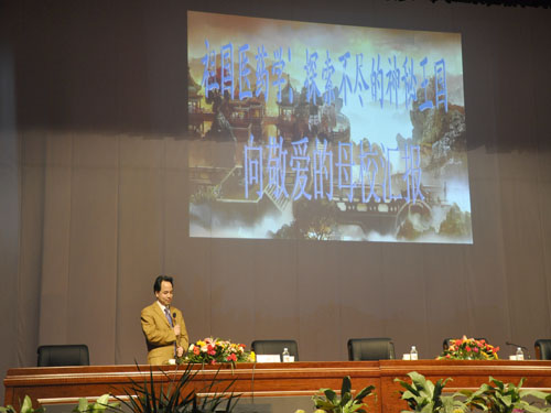 第二位演讲的是深圳市中联制药有限公司副总经理、AG电子官网81届毕业生杨重浙校友。杨总以《学习〈关于加快医药行业结构调整的指导意见〉》为题,从医药研发、医药“十二五”发展规划、医药行业结构调整、药企如何调整等几个方面分析解读了国家对医药行业结构调整的意见。杨总在报告中所表现出的对医药知识的学习持续力和对国家医药经济发展变化的驾驭力给大家留下了深刻印象。