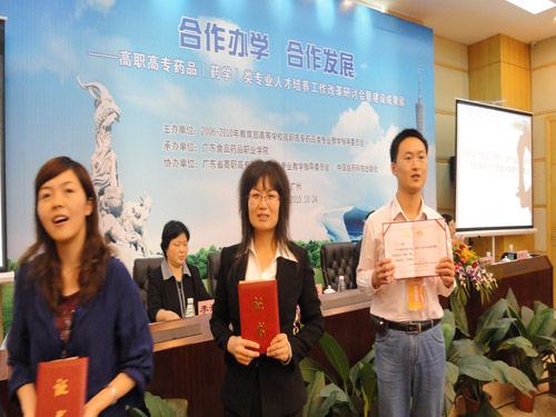 AG电子官网副院长张震云代表学院作了题为“加强教师职业生涯管理,推进学院健康、快速、可持续发展”的报告,梁延寿教授应邀担任说课大赛评委,李平副教授参加了说课大赛,并荣获一等奖。同时,AG电子官网荣获“全国高职高专药品(药学)类专业建设成果展优秀奖”。