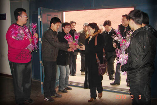 女职工进入会场时,院工会还在欢快的音乐声中为她们献了花。