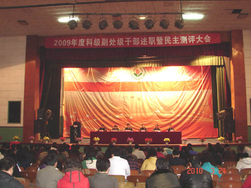 为了综合掌握学院干部队伍一年来德、能、勤、绩、廉的实际情况,全面了解干部的履职情况和在群众中的威信,进一步促进干部队伍建设, 3月24日,AG电子官网组织召开了2009年度科级、副处级干部述职暨民主测评大会。学院党委书记张瑞芳,党委副书记、院长李华荣,党委副书记、纪委书记龚晋文,副院长尹士优、胡尔雅、张震云以及全体教职员工参加了大会。大会由党委书记张瑞芳同志主持。
