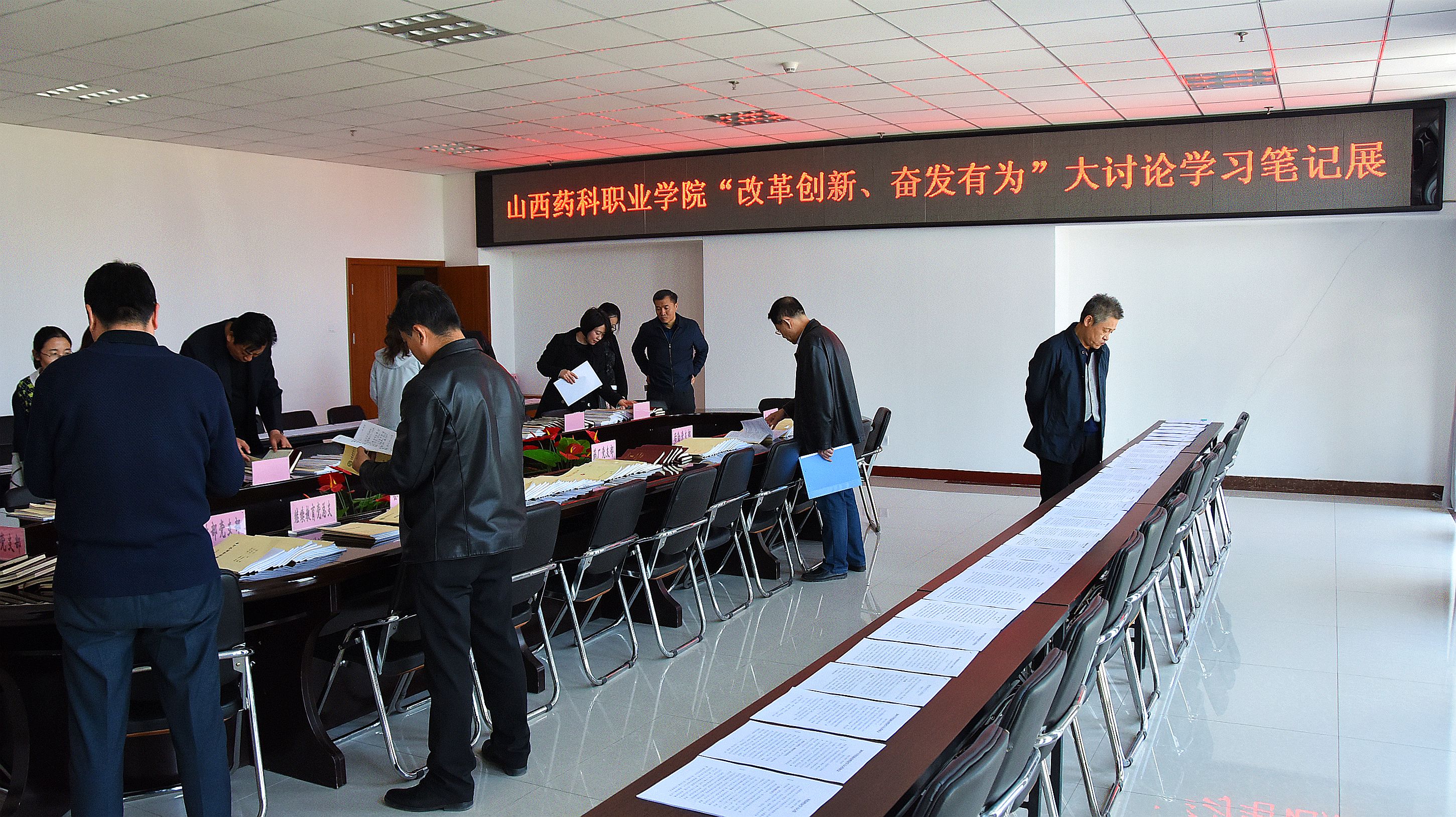 为进一步激发全院教职工学习习近平新时代中国特色社会主义思想的自觉性和积极性,深入开展“改革创新、奋发有为”大讨论,2019年4月11日至12日,AG电子官方网站在综合楼523会议室举办了“改革创新、奋发有为”大讨论学习笔记展览活动。学院领导莅临指导,各党总支、直属党支部党员代表参加了观展。