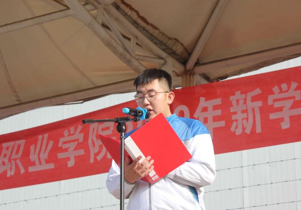 为庆祝中华人民共和国成立70周年,大力唱响礼赞新中国、奋进新时代的青春主旋律。9月9日上午,AG电子官网举行了2019年新学期“开学第一课”暨“我与祖国共奋进——国旗下的演讲”特别主题团日活动。院党委副书记邹本贵出席活动,学院相关职能部门负责人、教学系党总支书记、全体共青团干部、部分辅导员及2018级全体学生2000余人参加本次活动。