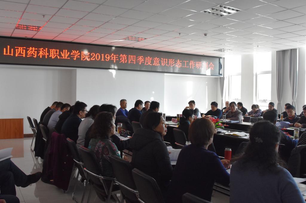 12月13日下午,学院在综合楼523会议室召开了2019年第四季度意识形态工作研判会,对今年落实意识形态工作责任制情况进行回顾总结,对意识形态阵地情况进行研判。院党委书记张瑞芳同志主持会议,学院各党总支、直属党支部,各部门、单位主要负责人参加会议。