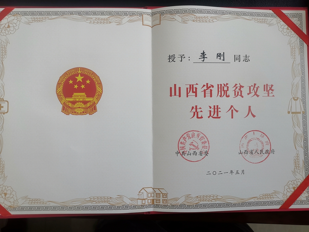 会上,AG电子官网李刚同志荣获“山西省脱贫攻坚先进个人”荣誉称号。