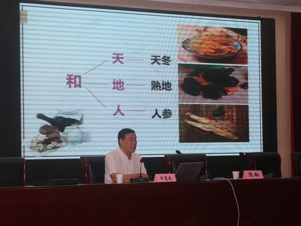 柳老师重点介绍了广誉远国药非物质文化遗产产品龟龄集和定坤丹的组方、古法炮制的过程及相关要求。柳老师的讲授,条理清晰、引经据典、深入浅出,带领大家进一步领悟了中医药所蕴含的“阴阳平衡”、“天人合一”等深厚的哲学思想,让大家深切地感受到中医药文化的博大精深。现场气氛热烈,在座师生听得津津有味,不时报以掌声。