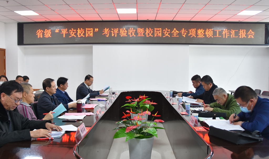院党委委员、副院长陕荣善从制度建设、硬件设备、食品安全、实验室安全、安全教育等方面向考评组全面汇报了学院2021年度“平安校园”创建和安全专项整顿工作情况。听取汇报后,考评组分别进行了材料审阅和座谈交流,随后进行了实地查看。