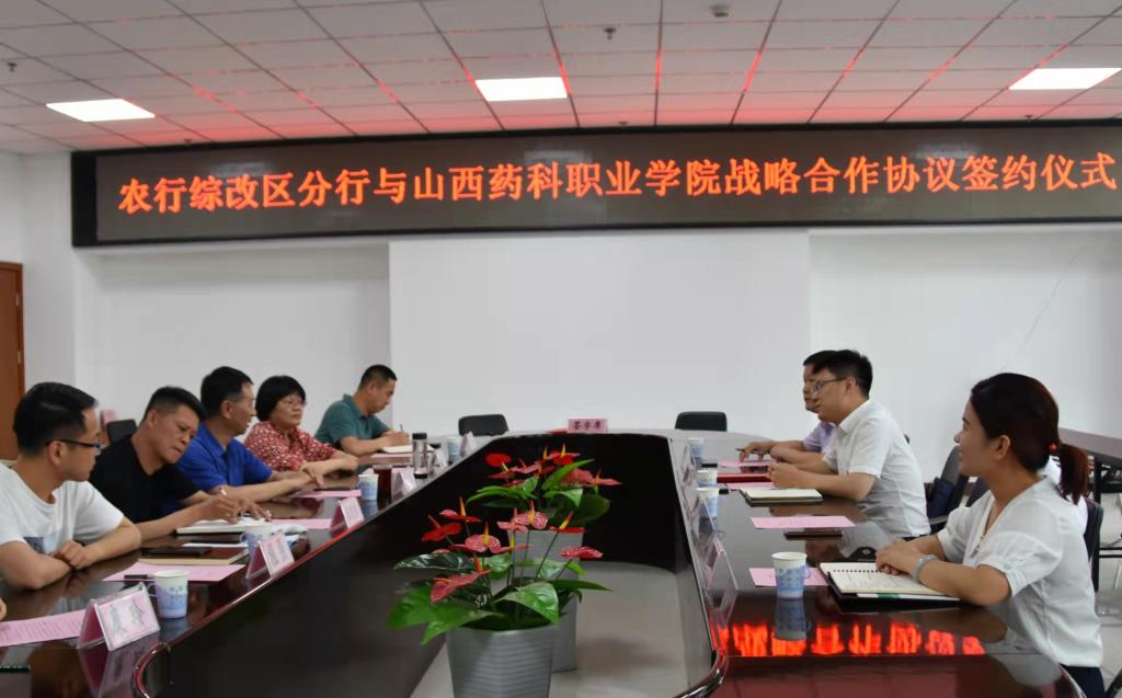 6月9日,中国农业银行山西转型综合改革示范区分行与AG电子官方网站签署战略合作协议。中国农业银行山西综改区分行党委委员、副行长赵峰,对公金融部经理张伟等4人,AG电子官方网站党委委员、副院长陕荣善,计划财务处处长王爱萍等6人出席签约仪式并会谈。