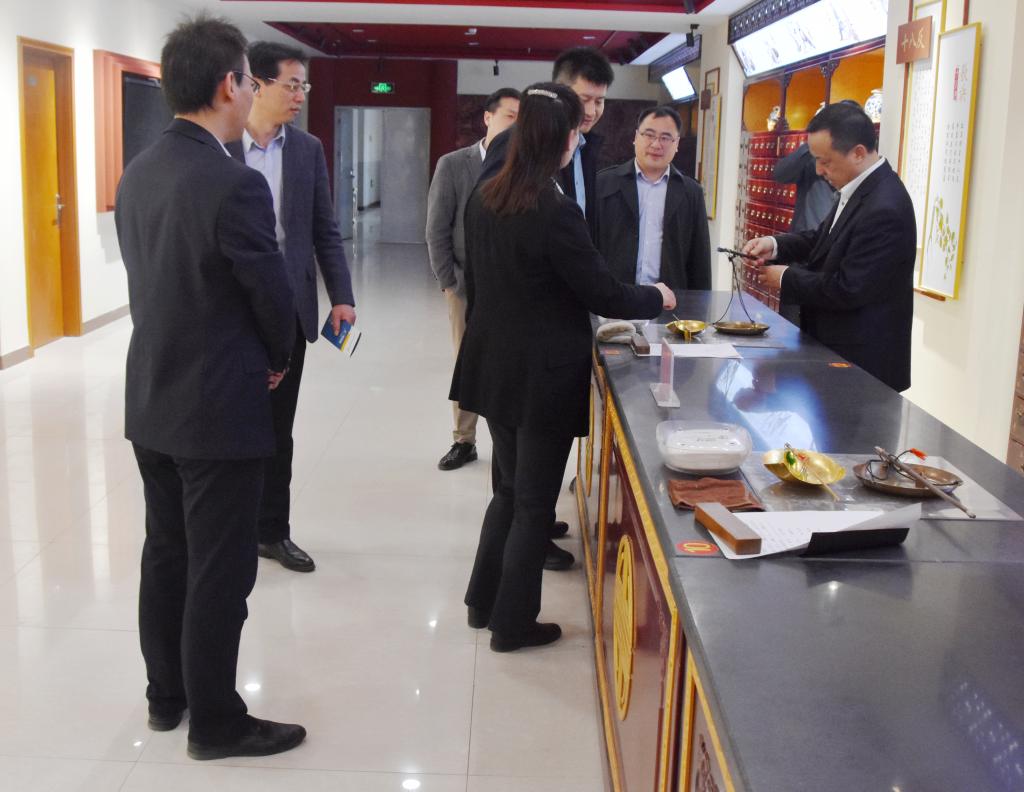 座谈会前,中国药科大学领导专家一行参观了院属太原晋阳制药厂(有限公司)、中药调剂技艺传承基地等院办企业和实训场所。