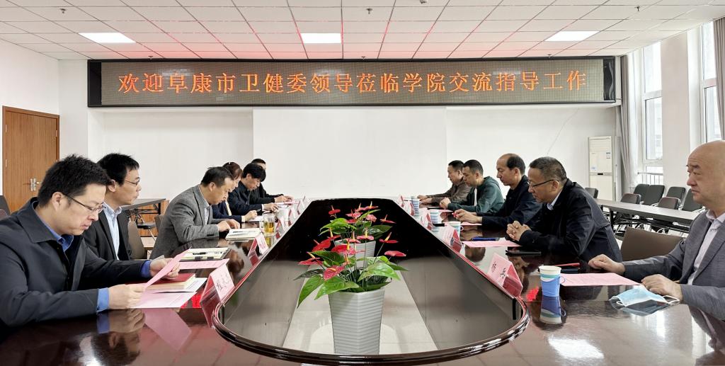 4月13日上午,新疆昌吉州阜康市卫健委党组副书记、主任董勇,阜康市医共体党委副书记、总医院院长朱志英等一行5人莅临AG电子官网考察调研,就进一步推动校地融合,促进学生就业高质量发展等事宜进行洽谈。学院领导王旭、张轩萍、刘志伟、原超和学院教务部、学生工作部负责人参加座谈。