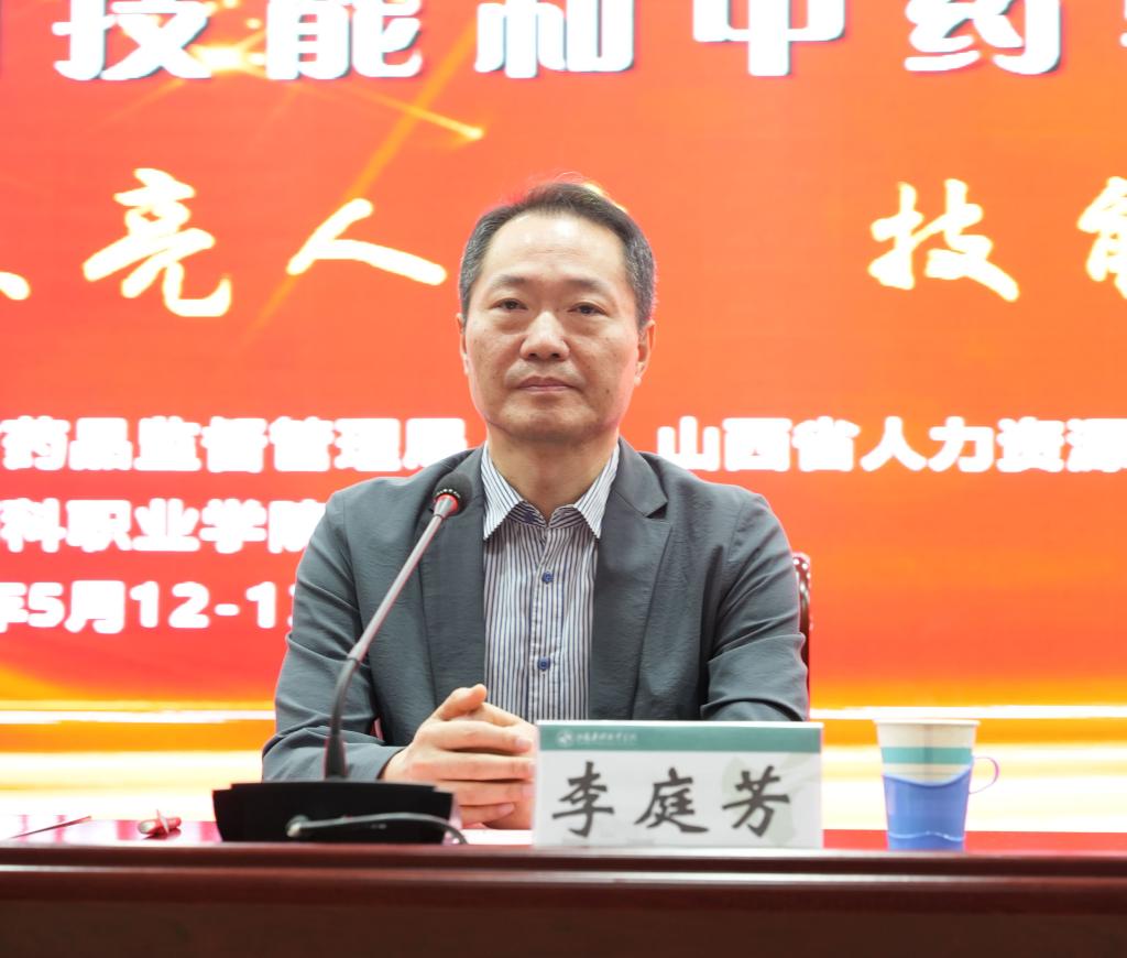 李庭芳宣布山西省第二届医药行业职业技能大赛——中药调剂技能和中药验收技能比赛正式开赛。