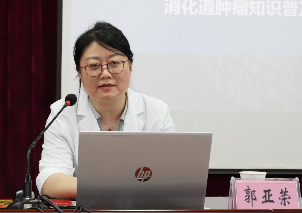 培训会上,郭亚荣主任为参会师生科普了生活中常见的六大类型癌症相关知识,并就应该如何避免、预防进行了专业讲解。郭主任的讲座贴近实际,通俗易懂,她倡导师生养成健康的生活习惯,比如预防食管癌应少吃烫食,预防肺癌肝癌应戒烟限酒等。