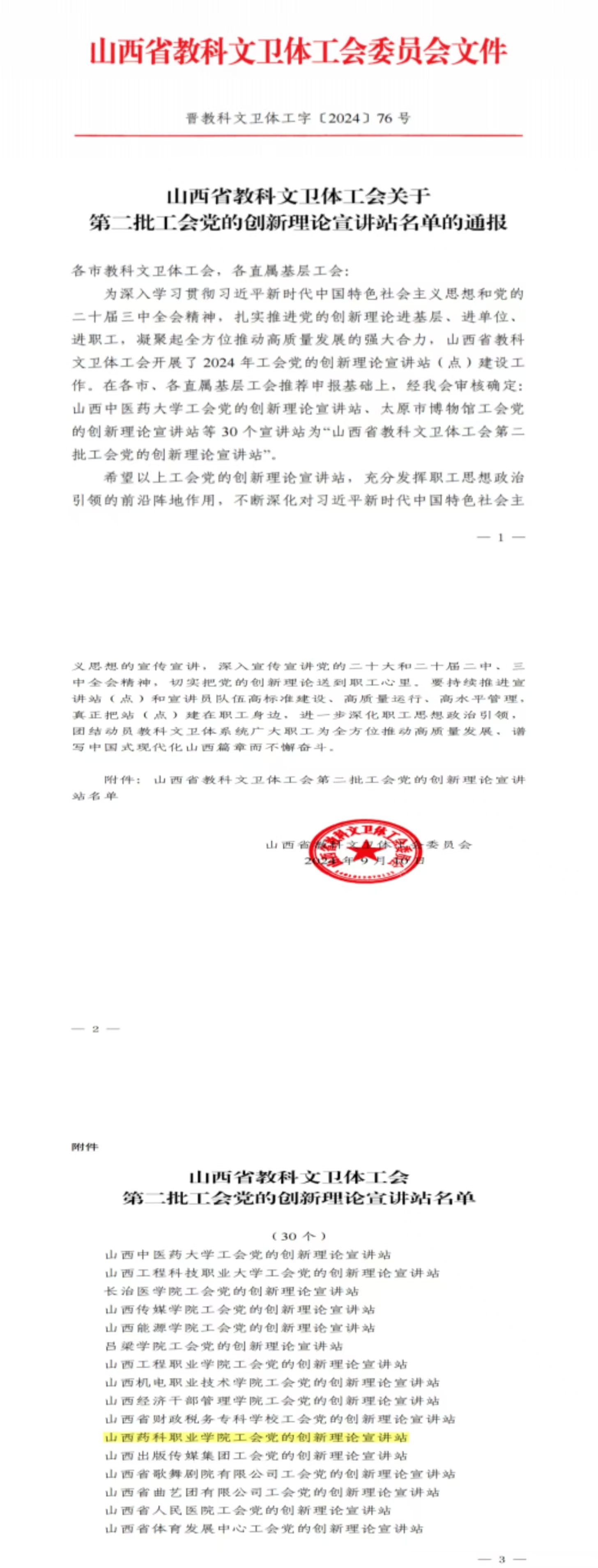 近日,山西省教科文卫体工会公布了关于第二批工会党的创新理论宣讲站名单的通报,AG电子官方网站党的创新理论宣讲站被命名为山西省教科文卫体工会第二批工会党的创新理论宣讲站。