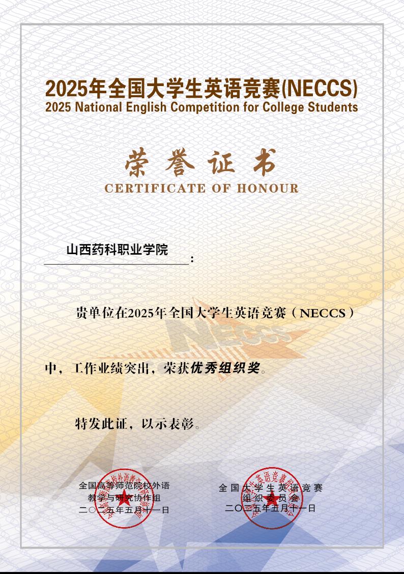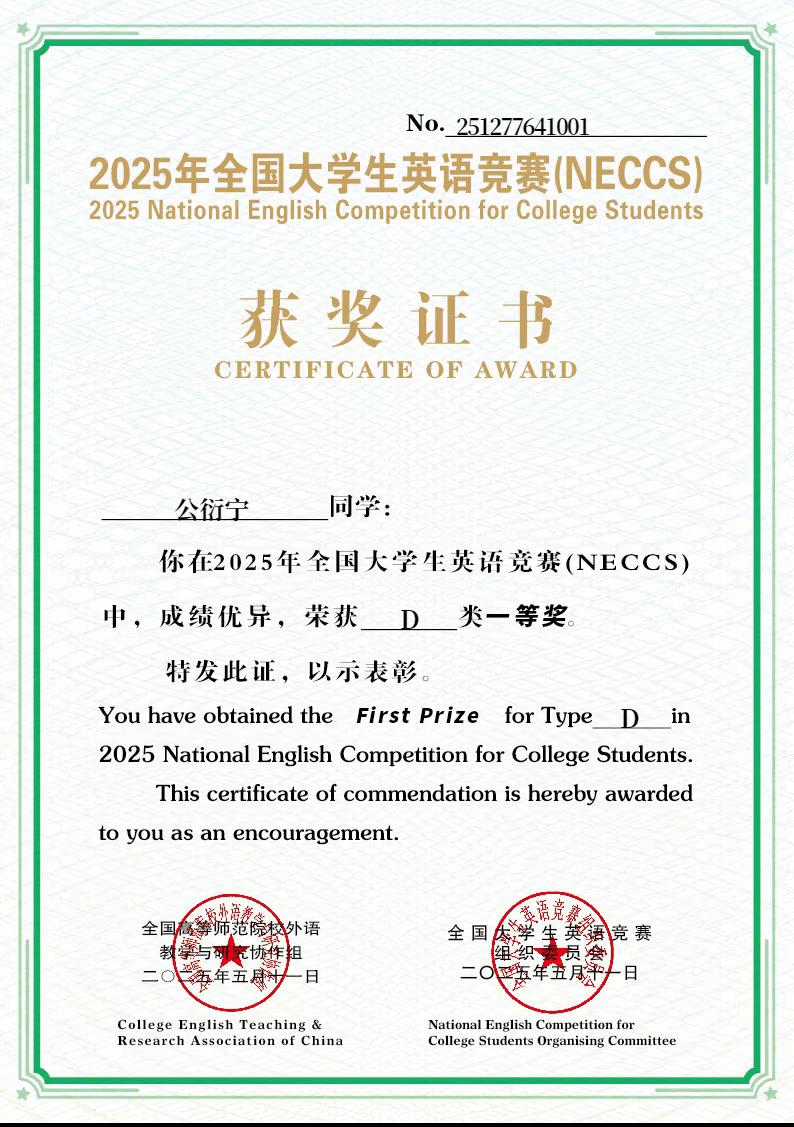 近日,2025年全国大学生英语竞赛决赛成绩揭晓,AG电子官网学子表现优异、取得佳绩,共斩获10个奖项,其中一等奖1项、二等奖3项、三等奖6项。此外,学院还荣获 “优秀组织奖” 称号,在全省职业院校中成绩位居前列。