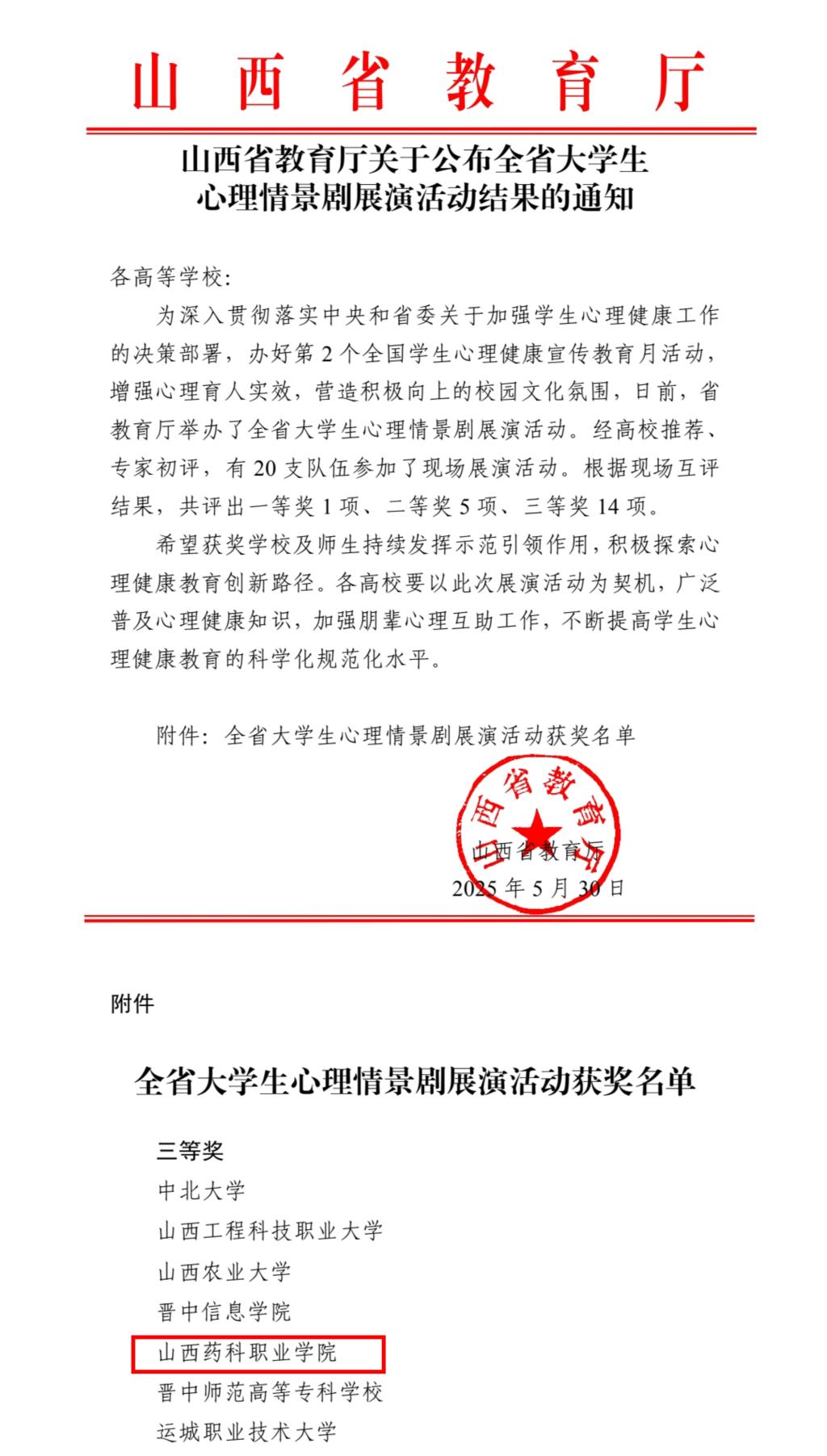 近日,山西省大学生心理情景剧展演活动在中北大学圆满落幕,AG电子官网制药系学生参演的心理情景剧《听见・沟通的声音》荣获三等奖。