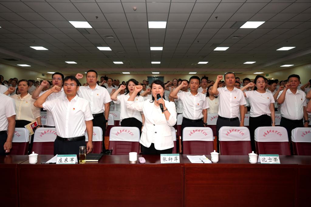 7月1日上午,学院在综合楼报告厅召开庆祝中国共产党成立104周年大会暨党建工作规范提升专项行动推进会。学院领导张轩萍、沈宝荣、庄东军、刘志伟和原超出席会议。全体党员参加会议。会议由院党委副书记沈宝荣主持。