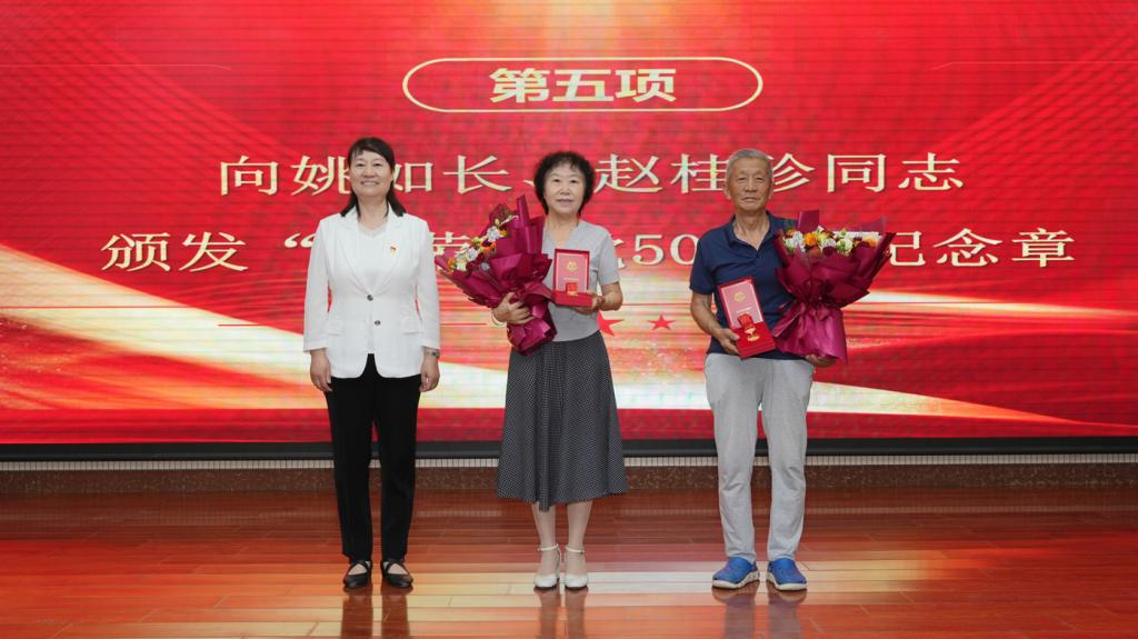 会上,为姚如长和赵桂珍2名同志颁发了“光荣在党50年”纪念章;为2025年新发展党员代表佩戴了党员徽章;新发展党员进行了入党宣誓,老党员重温了入党誓词。