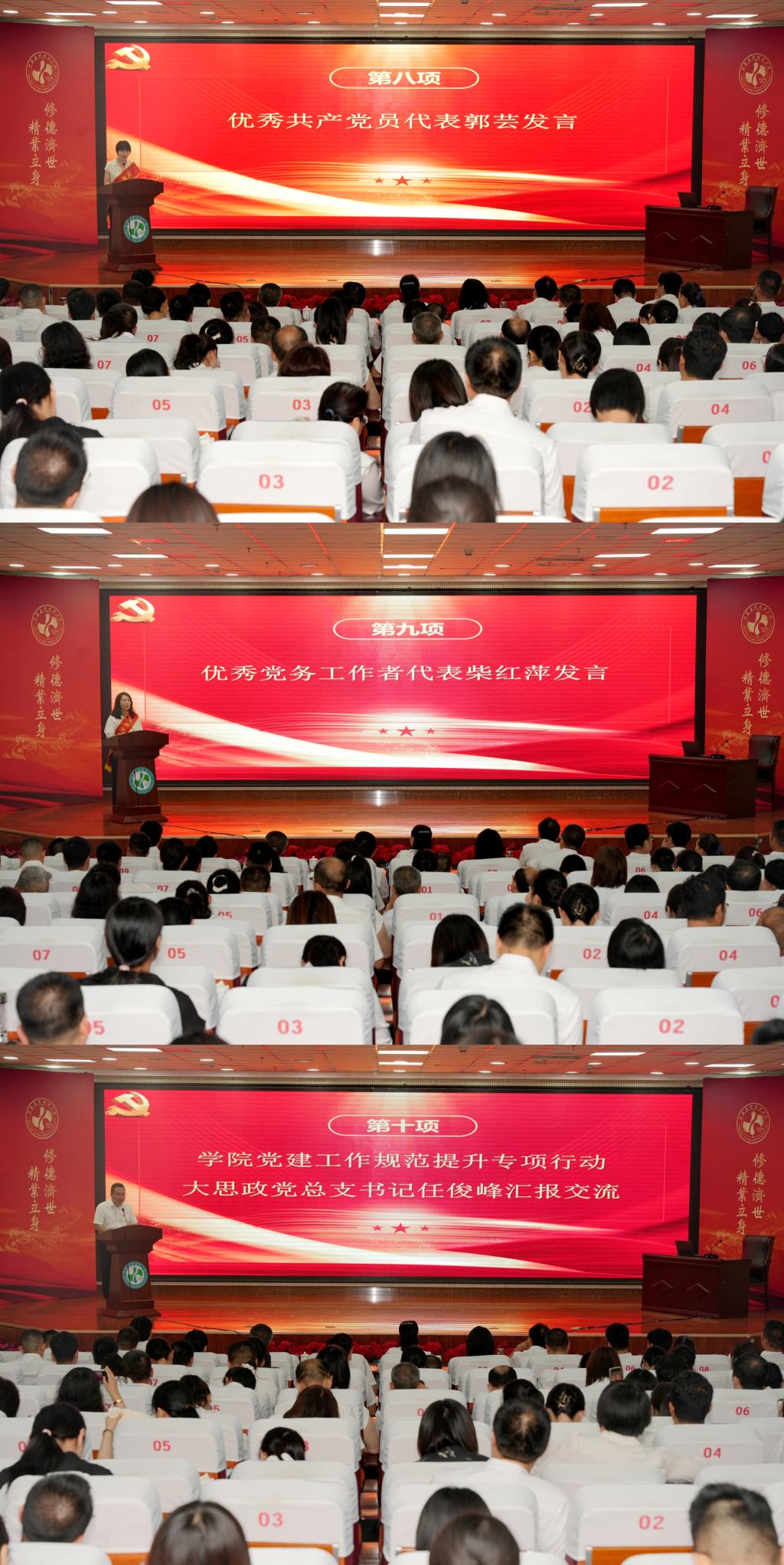 会上,郭芸和柴红萍分别代表优秀共产党员和优秀党务工作者发言,大思政党总支书记任俊峰代表各基层党组织就党建工作规范提升专项行动进行汇报交流。