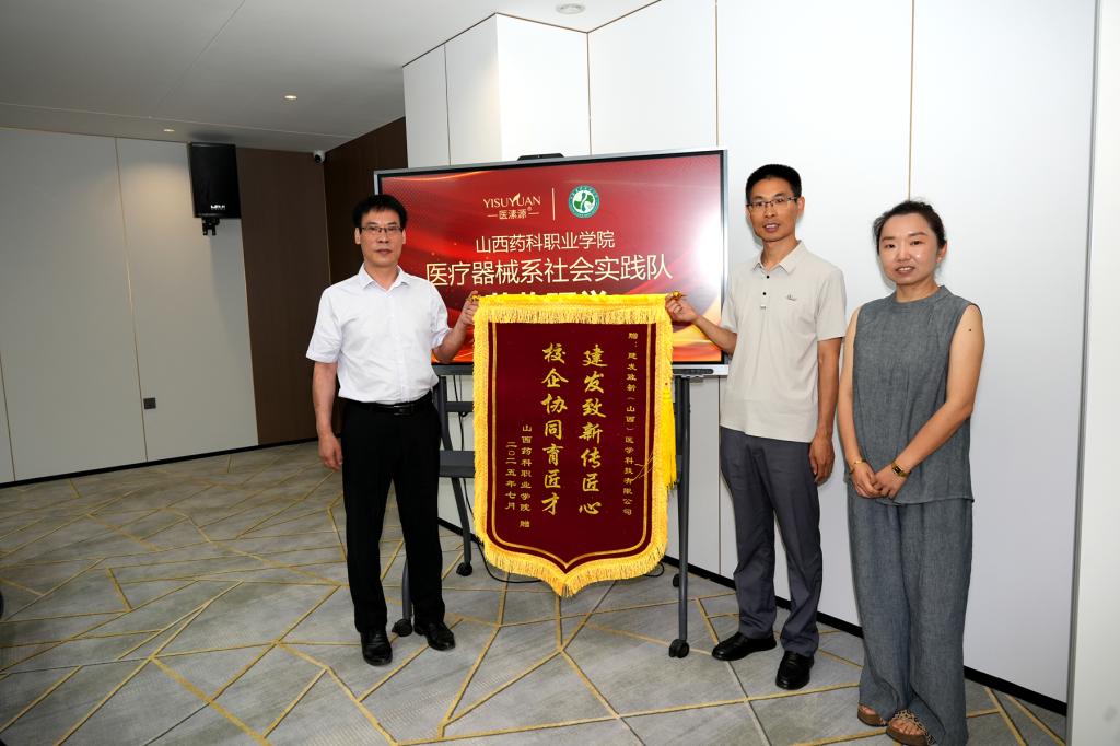 在校企深度研讨座谈会上,校企合作负责人梁安鹏汇报了产业学院教学中心运行成果及协同开发计划,医溸源(山西)公司董事长马文彦详细介绍了企业战略布局与业务规划。刘志伟代表学院向两家企业赠送锦旗,致谢企业对AG电子官网人才培养的鼎力支持。