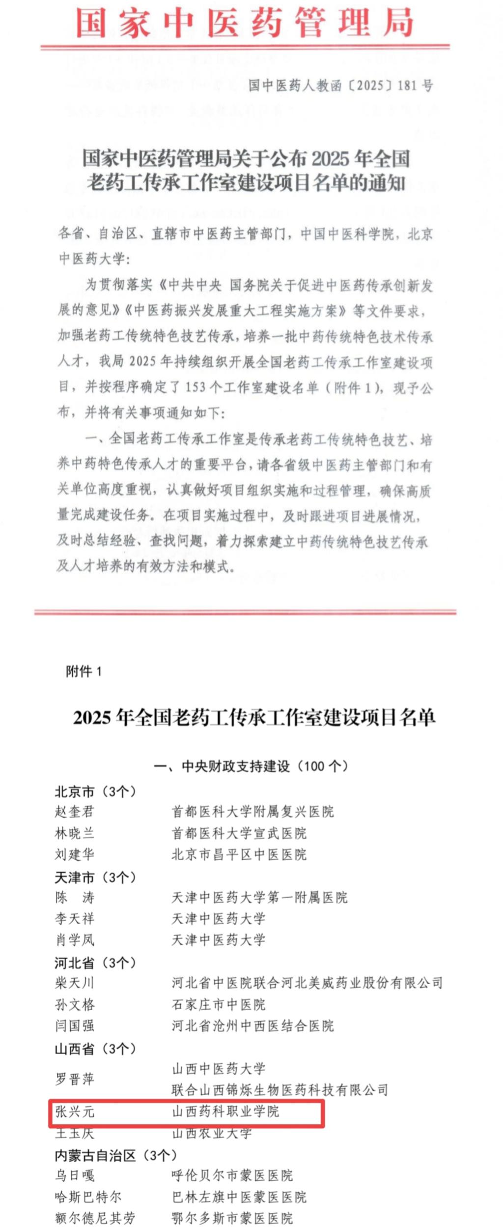 近日,国家中医药管理局公布《2025年全国老药工传承工作室建设项目名单》,AG电子官网张兴元教授领衔的大师工作室成功入选。