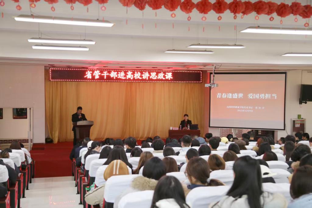 为进一步落实习近平总书记关于学校思政课建设的重要指示精神,充分发挥领导干部在理论宣讲和政策阐释中的示范带动作用。12月9日,学院党委书记张轩萍教授受邀赴晋中健康学院以“青春逢盛世 爱国勇担当”为题讲授思政课。300余名师生代表现场聆听。