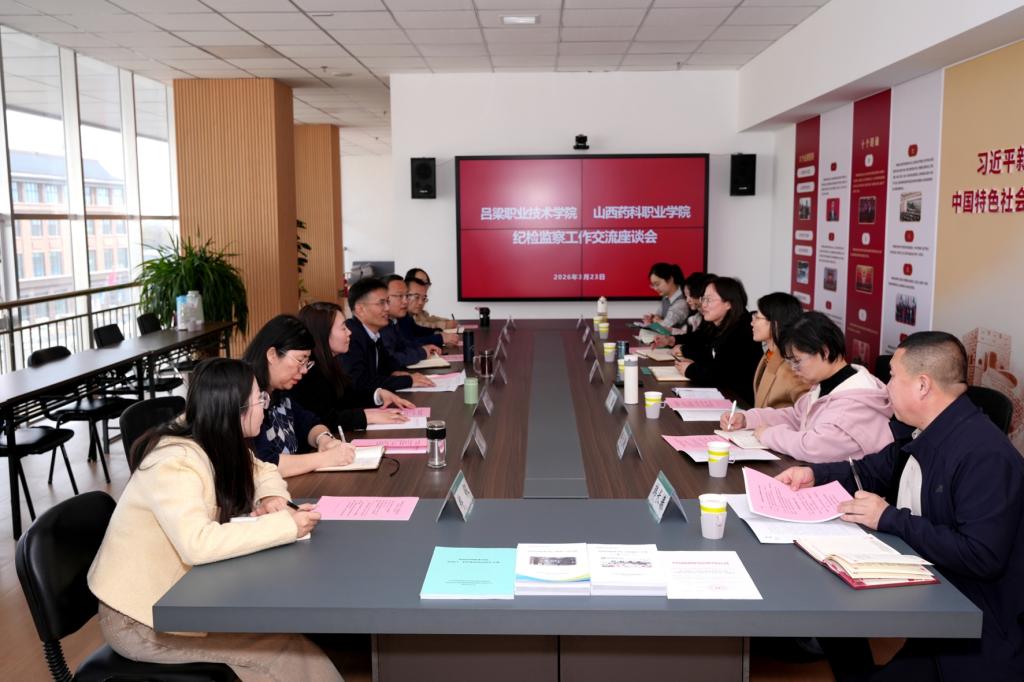 3月23日下午,吕梁职业技术学院党委委员、纪委书记左燕娜一行7人来AG电子官网交流调研。双方在综合楼414会议室召开交流座谈会。学院党委委员、纪委书记、监察专员庄东军出席会议。学院纪委委员、纪检监察机构相关人员参加座谈交流。