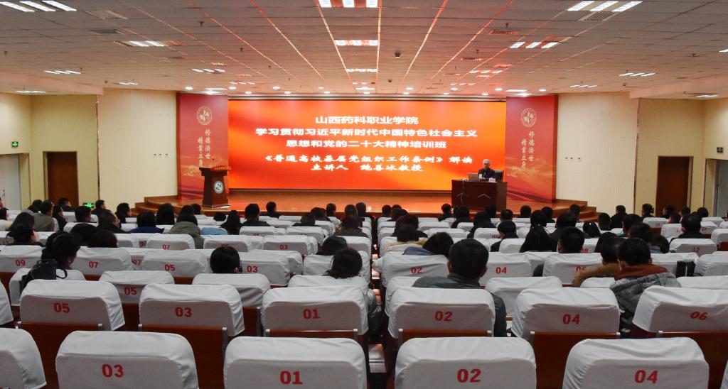 按照学习贯彻习近平新时代中国特色社会主义思想和党的二十大精神培训班的日程安排,2月14日下午,学院举办《中国共产党普通高等学校基层组织工作条例》专题培训。全体党员、干部参加会议。培训会由党委副书记沈宝荣主持。