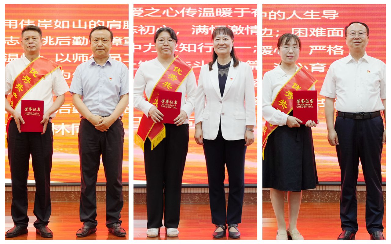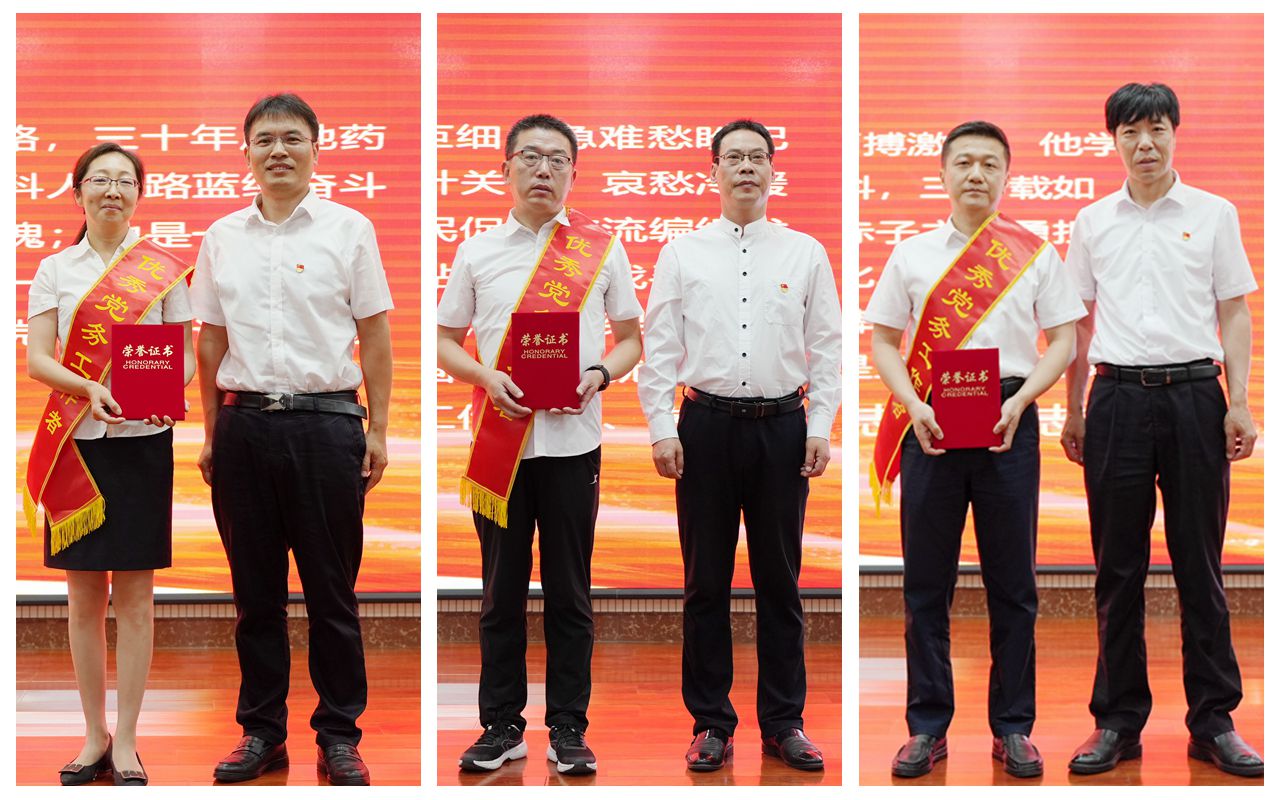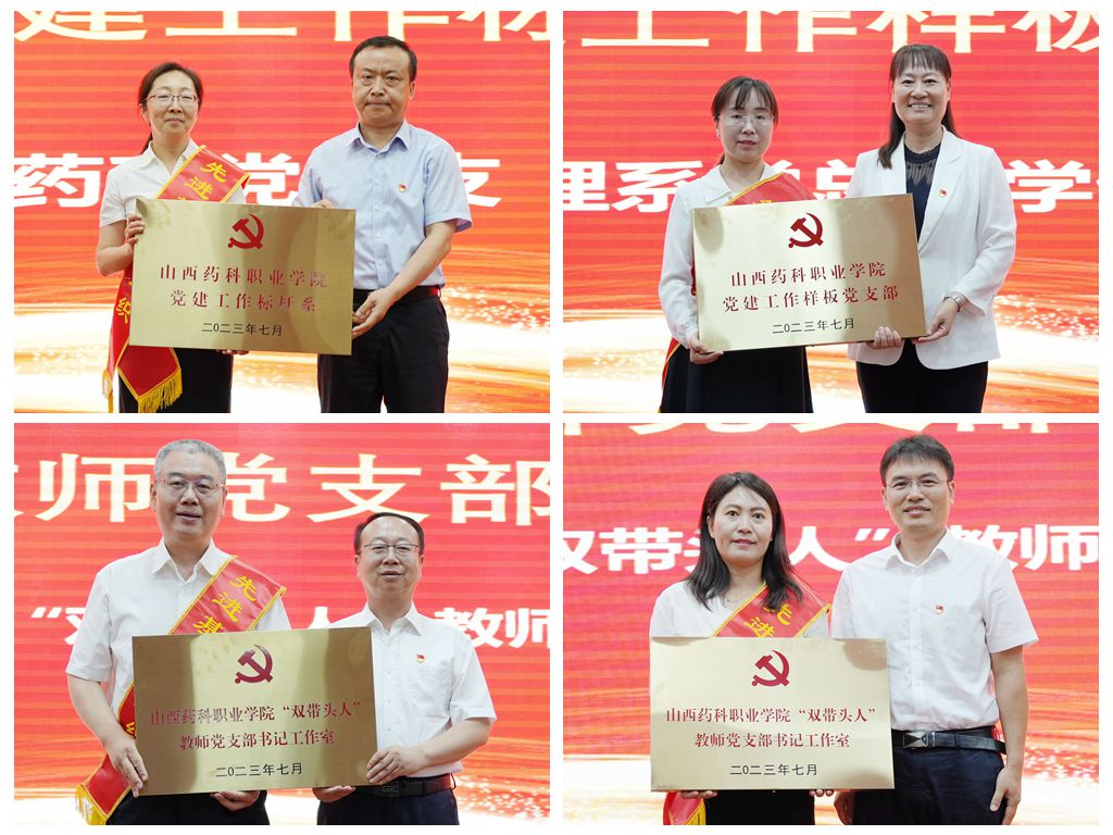 与会院领导分别为优秀党员、优秀党务工作者颁奖,并为学院党建标杆系、样板党支部和“双带头人”教师党支部书记工作室授牌。