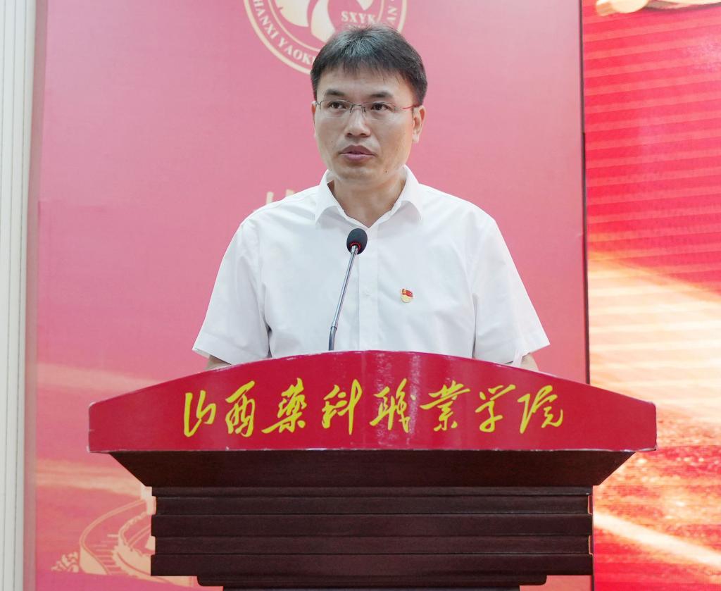 王旭以《让党旗在山西药科高质量发展新征程上高高飘扬》为题作了总结讲话。他代表学院全体党员同志向我们伟大光荣的中国共产党致以节日的祝福,向受表彰的同志表示热烈祝贺,向新党员表示热烈欢迎,向奋战在教学、管理、服务等各个岗位上的广大党员职工致以节日的问候。