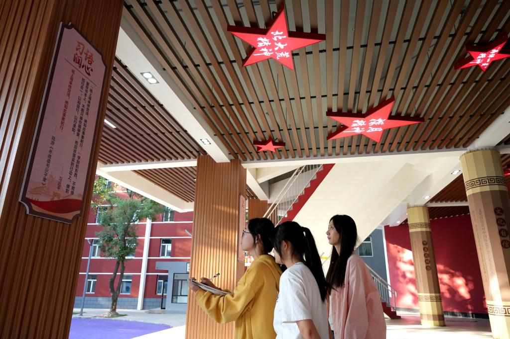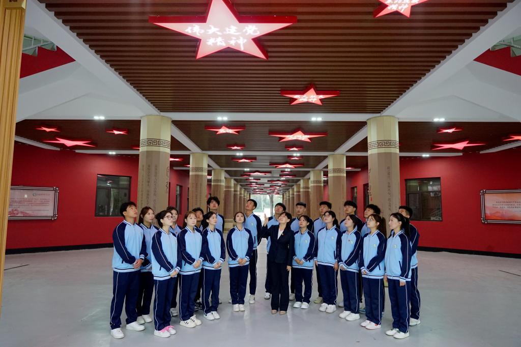 习近平总书记强调,用社会主义核心价值观教育学生,引导他们扣好人生的第一粒扣子,是高校思想政治工作的使命所在。为此,学院党委立足“三全育人”,高站位谋划,有效利用学生食堂长廊通道物理空间,专门规划设计了以红色为主基调社会主义核心价值观大道。学院核心价值观大道以社会主义核心价值观、“四个自信”、“习语润心”、中国共产党人精神谱系等为主要内容,并从中华文化和时代精神两个维度对其作出全面阐释,启发人们“博学而笃志,切问而近思”;20根坚挺的圆形立柱形似中国古代折叠的“简牍”,仿佛在唤醒人们的文化记忆,给人一种厚重的历史沧桑感;抬头仰望,大道顶棚红星闪耀,以“伟大建党精神”为引领的不同时期的中国共产党人的精神谱系赫然入目,神圣之感、敬仰之情油然而生。