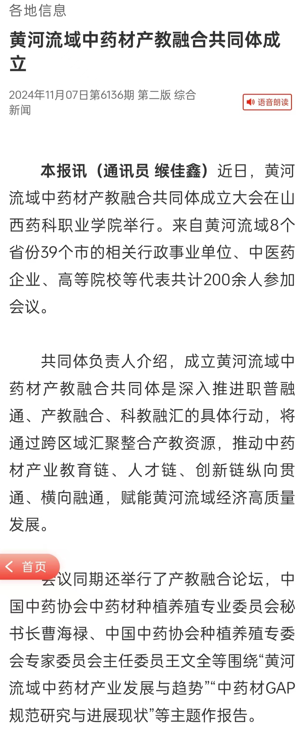 黄河流域中药材产教融合共同体成立