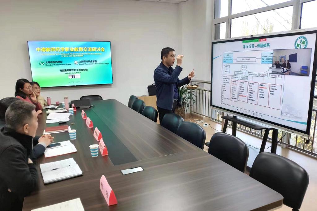 为加强国际交流合作,共享教育教学资源,赋能学院“双高”专业群发展,近日,学院与德国海因里希朗茨职业教育学校开展线上交流研讨会。德国海因里希朗茨职业教育学校副校长Reuter、医药部门主任Melchers及2位专业教师,学院教务部部长程永杰、中药系主任吕建军、药学系主任王玉秀及相关教研室主任参加了研讨会。